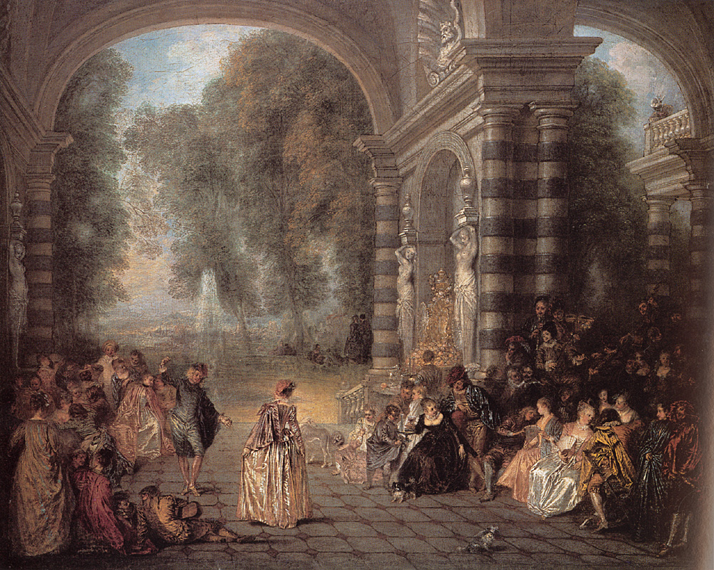 Rococo, less commonly roccoco, or "Late Baroque", is an 18th-century artistic movement and style, affecting many aspects of the arts including painting, sculpture, architecture, interior design, decoration, literature, music, and theatre. It developed in the early 18th century in Paris, France as a reaction against the grandeur, symmetry, and strict regulations of the Baroque, especially of the Palace of Versailles. Rococo artists and architects used a more jocular, florid, and graceful approach to the Baroque. Their style was ornate and used light colours, asymmetrical designs, curves, and gold. Unlike the political Baroque, the Rococo had playful and witty themes. The interior decoration of Rococo rooms was designed as a total work of art with elegant and ornate furniture, small sculptures, ornamental mirrors, and tapestry complementing architecture, reliefs, and wall paintings. The Rococo was also important in theatre. The book The Rococo states that no other culture "has produced a wittier, more elegant, and teasing dialogue full of elusive and camouflaging language and gestures, refined feelings and subtle criticism" than Rococo theatre, especially that of France. By the end of the 18th century, Rococo was largely replaced by the Neoclassic style. In 1835 the Dictionary of the French Academy stated that the word Rococo "usually covers the kind of ornament, style and design associated with Louis XV's reign and the beginning of that of Louis XVI". It includes therefore, all types of art from around the middle of the 18th century in France. The word is seen as a combination of the French rocaille (stone) and coquilles (shell), due to reliance on these objects as decorative motifs.The term may also be a combination of the Italian word "barocco" (an irregularly shaped pearl, possibly the source of the word "baroque") and the French "rocaille" (a popular form of garden or interior ornamentation using shells and pebbles) and may describe the refined and fanciful style that became fashionable in parts of Europe in the 18th century. Owing to Rococo love of shell-like curves and focus on decorative arts, some critics used the term to derogatively imply that the style was frivolous or merely modish. When the term was first used in English in about 1836, it was a colloquialism meaning "old-fashioned". The style received harsh criticism and was seen by some to be superficial and of poor taste, especially when compared to neoclassicism; despite this, it has been praised for its aesthetic qualities and since the mid-19th century, the term has been accepted by art historians. While there is still some debate about the historical significance of the style to art in general, Rococo is now widely recognized as a major period in the development of European art. Source: wikipedia