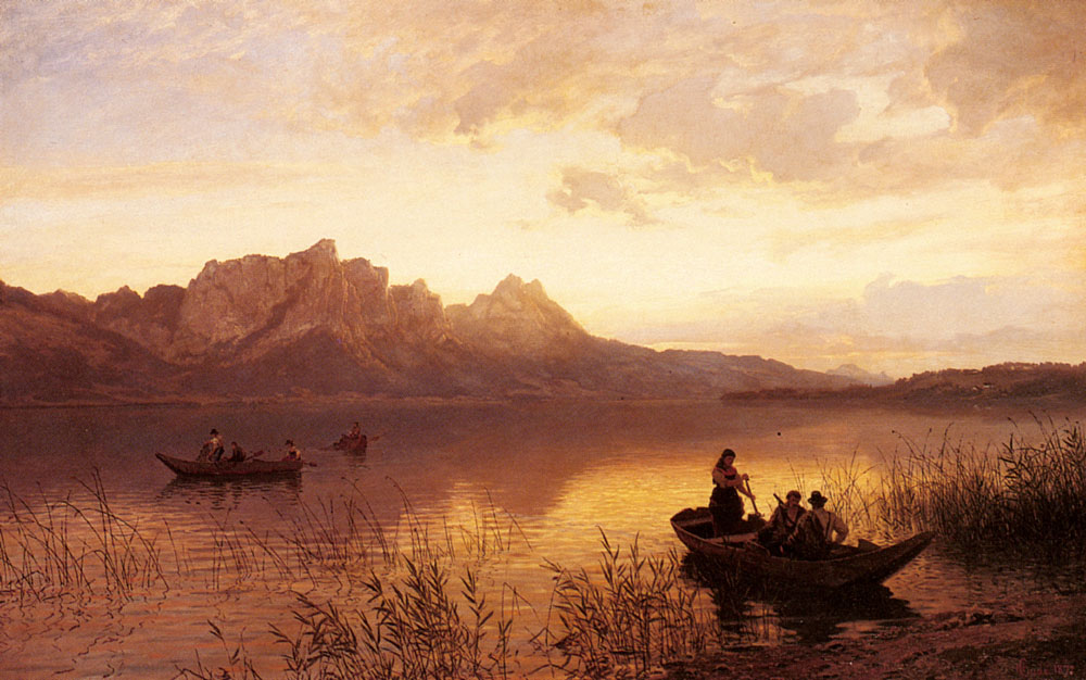 The Düsseldorf school of painting refers to a group of painters who taught or studied at the Düsseldorf Academy (now the Staatliche Kunstakademie Düsseldorf or Düsseldorf State Art Academy) in the 1830s and 1840s, when the Academy was directed by the painter Wilhelm von Schadow. The work of the Düsseldorf School is characterized by finely detailed yet still fanciful landscapes, often with religious or allegorical stories set in the landscapes. Leading members of the Düsseldorf School advocated "plein air painting", and tended to use a palette with relatively subdued and even colors. The Düsseldorf School grew out of and was a part of the German Romantic movement. Prominent members of the Düsselorf School included von Schadow, Karl Friedrich Lessing, Johann Wilhelm Schirmer, Andreas Achenbach, Hans Fredrik Gude, Oswald Achenbach, and Adolf Schrödter. The Düsseldorf School had a significant influence on the Hudson River School in the United States, and many prominent Americans trained at the Düsseldorf Academy and show the influence of the Düsseldorf School, including George Caleb Bingham, David Edward Cronin, Eastman Johnson, Worthington Whittredge, Richard Caton Woodville, William Stanley Haseltine, James McDougal Hart, and William Morris Hunt, as well as German émigré Emanuel Leutze. Albert Bierstadt applied but was not accepted. His American friend Worthington Whittredge became his teacher while attending Düsseldorf. Source: wikipedia